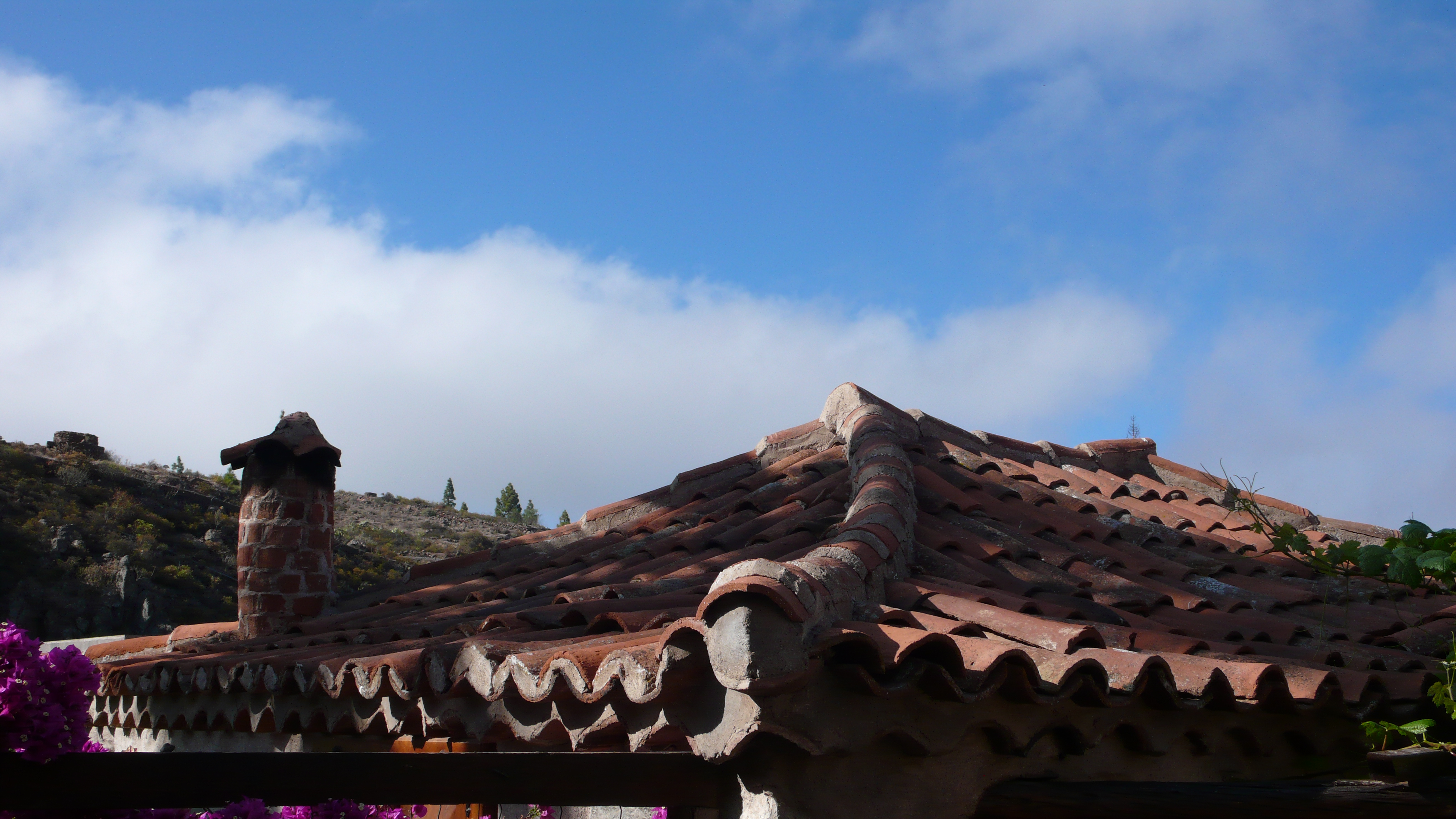 Another architectural analogy occurred to me over the past couple of weeks, time Karin and I have spent back in Tenerife pursuing field work funded by a small grant from the British Ecological Society.  We are staying in a cottage in the pretty village of Chirche in the west of the island.  The older properties, our rented castita included, are roofed with traditional, hand made rough clay tiles that are slim, curved and tapering towards one end.  Tiles are carefully laid curve up and curve downwards in alternating rows so as to both shield the building from the weather and to shed the rain from the roof in the channels formed by the up-curved rows.  These same tiles are used along the ridges of the roof, in contrast to roofing back in the UK where differently shaped tiles would serve for roof and ridge.  Not only that but the same basic curved and tapering form serves as a structural element for the tops of walls, as half pipes to direct the flow of water, and as building blocks for chimney stacks, etc.