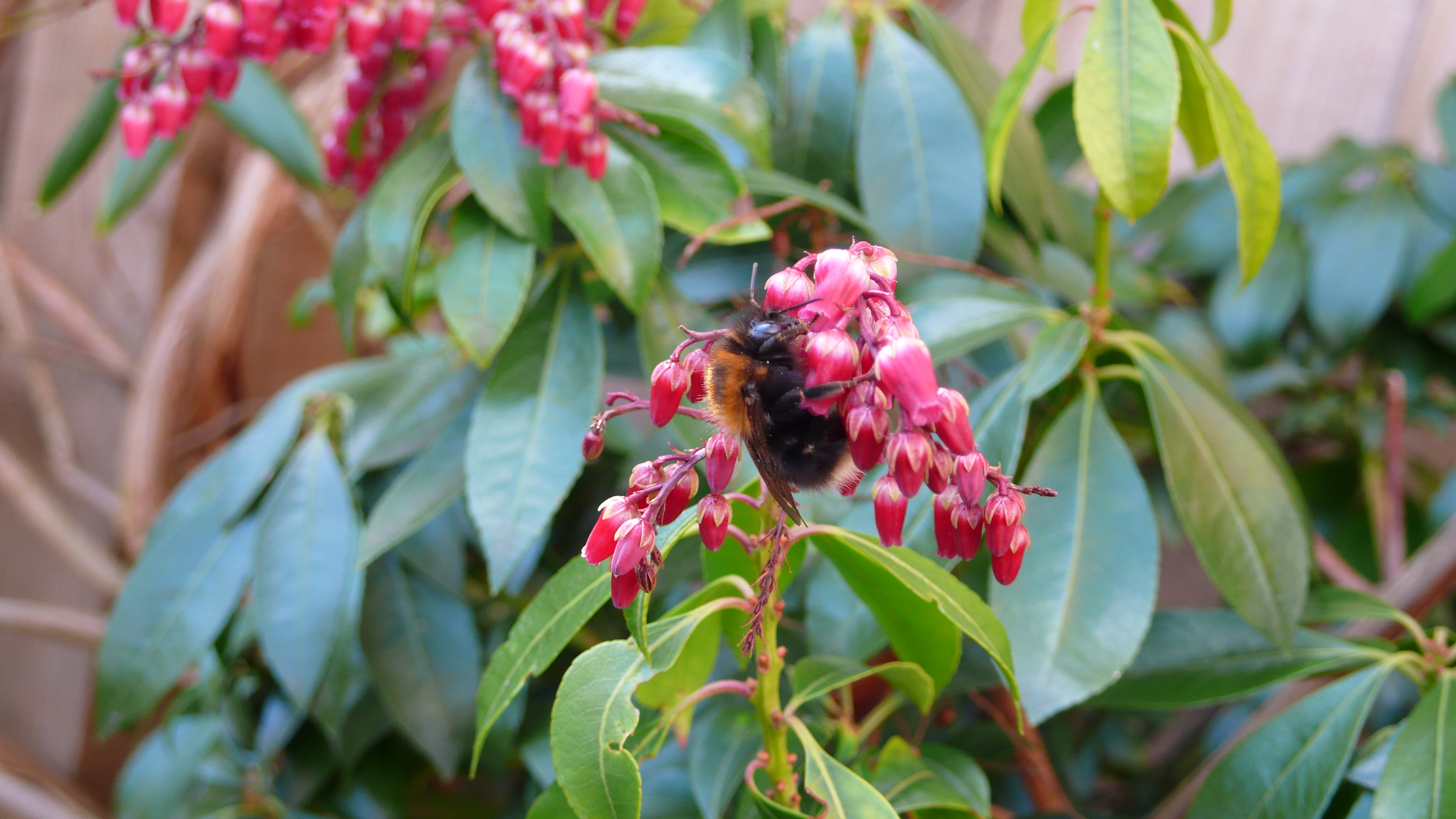 For my final post for Pollinator Awareness Week I’ve chosen another bumblebee, one with a fascinating history and ecology. The Tree bumblebee (Bombus hypnorum) is a relatively new arrival on our shores. It was first discovered near Southampton by Dave Goulson in 2001; since then has spread out through the country, as far north (currently) as central Scotland, and has recently been recorded from Ireland. It arrived in Northamptonshire in 2006. The Bees, Wasps and Ants Recording Society (BWARS) has been tracking its spread through a recording scheme: it’s very distinctive being the only one of our 25 bumblebees to have a ginger thorax, black abdomen and white tail.