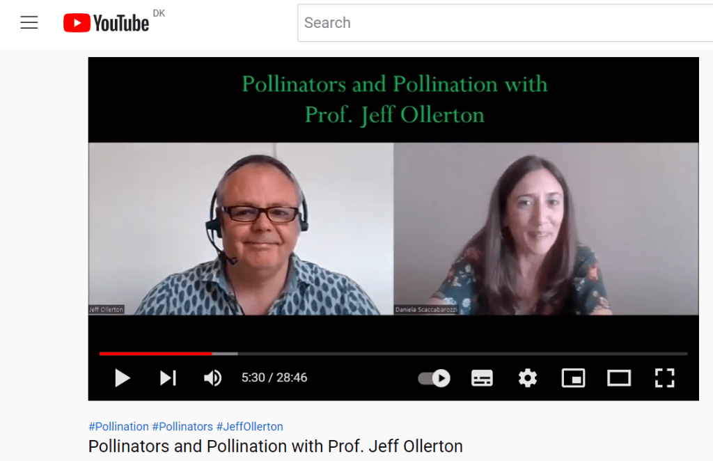 Recently I enjoyed chatting with Dr Daniela Scaccabarozzi for the YouTube channel that she runs called Earth To Be. In a wide ranging interview we discussed my recent book, how it came about, some of the things that intrigued me during its research (including a cockroach-pollinated flower!), and the role of people and pollinators in the wider ecosystem. Thanks to Daniela for the invitation to chat! Here’s the link to the interview.