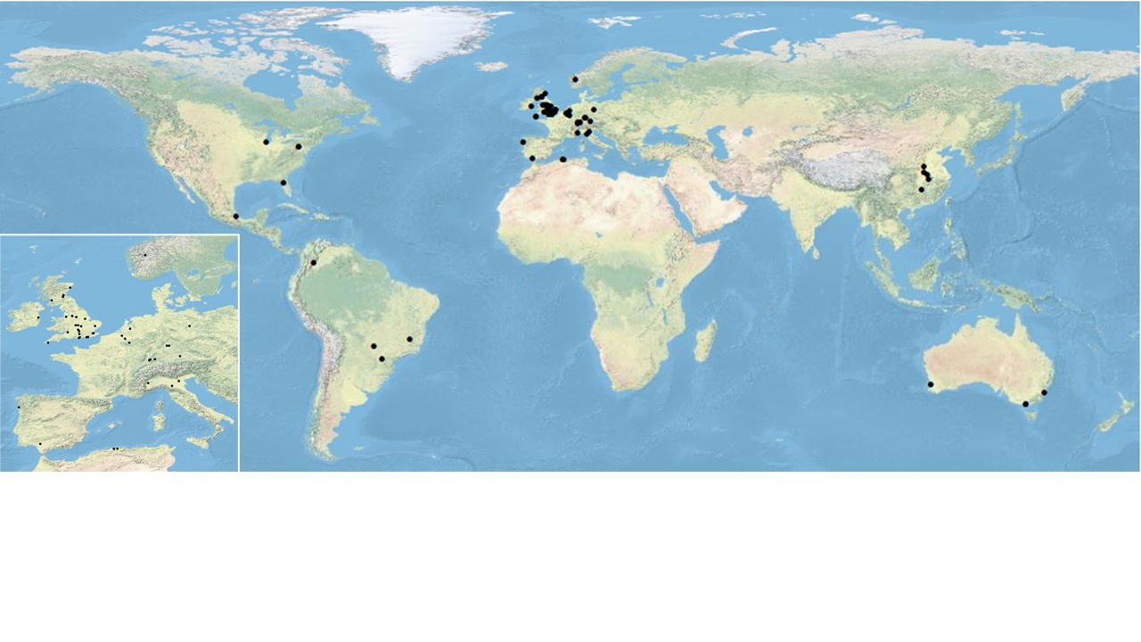 During the lockdown period of the COVID-19 pandemic in 2020, many pollination ecologists were stuck at home: universities and research institutes were closed and restrictions on travel meant that it was not possible to get out and do field work. In order to keep active and motivated, and to turn adversity into an opportunity, an ad hoc network of more than 70 researchers from 15 different countries (see the map above) decided to collect standardised data on the plant-pollinator networks in their own gardens and nearby public spaces.