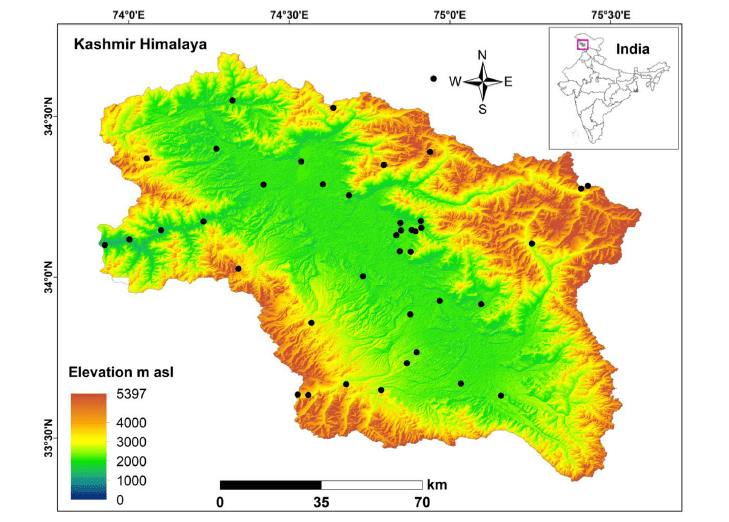 Although we sometimes like to think that we have a “global” perspective on plant-pollinator interactions, in truth there are large parts of the world where we have little or no information. That’s especially true of biodiversity hotspots. One such hotspot is the Kashmir Himalaya, a relatively small area (just 135 km long by 32 km wide) that nonetheless contains an estimated 2,000 species of flowering plant, more than 150 of which are endemic to the area. In addition, over 1,280 insect pollinator species have been described, including at least 29 species of bumblebees and as many as 40 species of butterflies.
