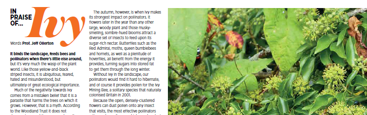 If you check out the latest issue of Bees and Other Pollinators Quarterly you’ll see that, as well as having a piece on the forthcoming COP26 climate change meeting and what it means for pollinators, the magazine has also published a short opinion piece by me called “In Praise of….Ivy”. The magazine is currently in the shops or you can subscribe by following this link: https://bq-mag.store/.