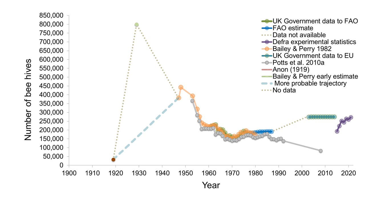 Since publishing what I believe are the most comprehensive data on the number of honey bee hives in Britain in my book Pollinators & Pollination: Nature and Society, I’ve posted occasional updates on my blog as more recent data become available. I believe that the last of these was in 2022 – see Have honey bees declined in Britain? An update of the numbers – so it feels like it’s time for another. And what’s more appropriate than to post this on World Bee Day 2025?!